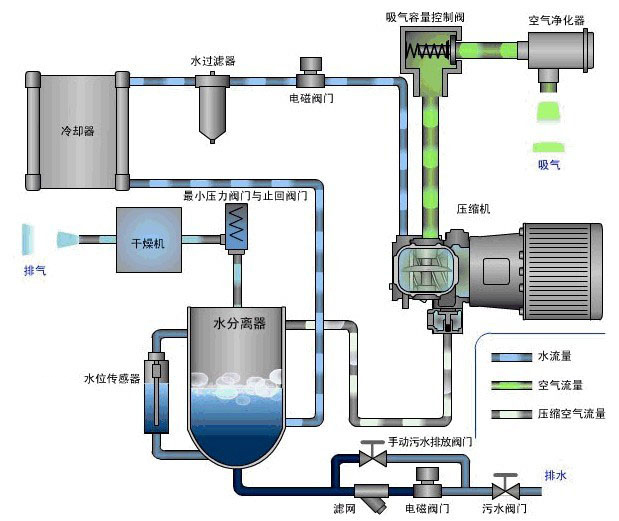 ■ 組合式分離器,多個旋風(fēng)分離器彼此連接。分離和析出在循環(huán)流中的冷凝水,而不需要借助任何的機(jī)械移動部件。