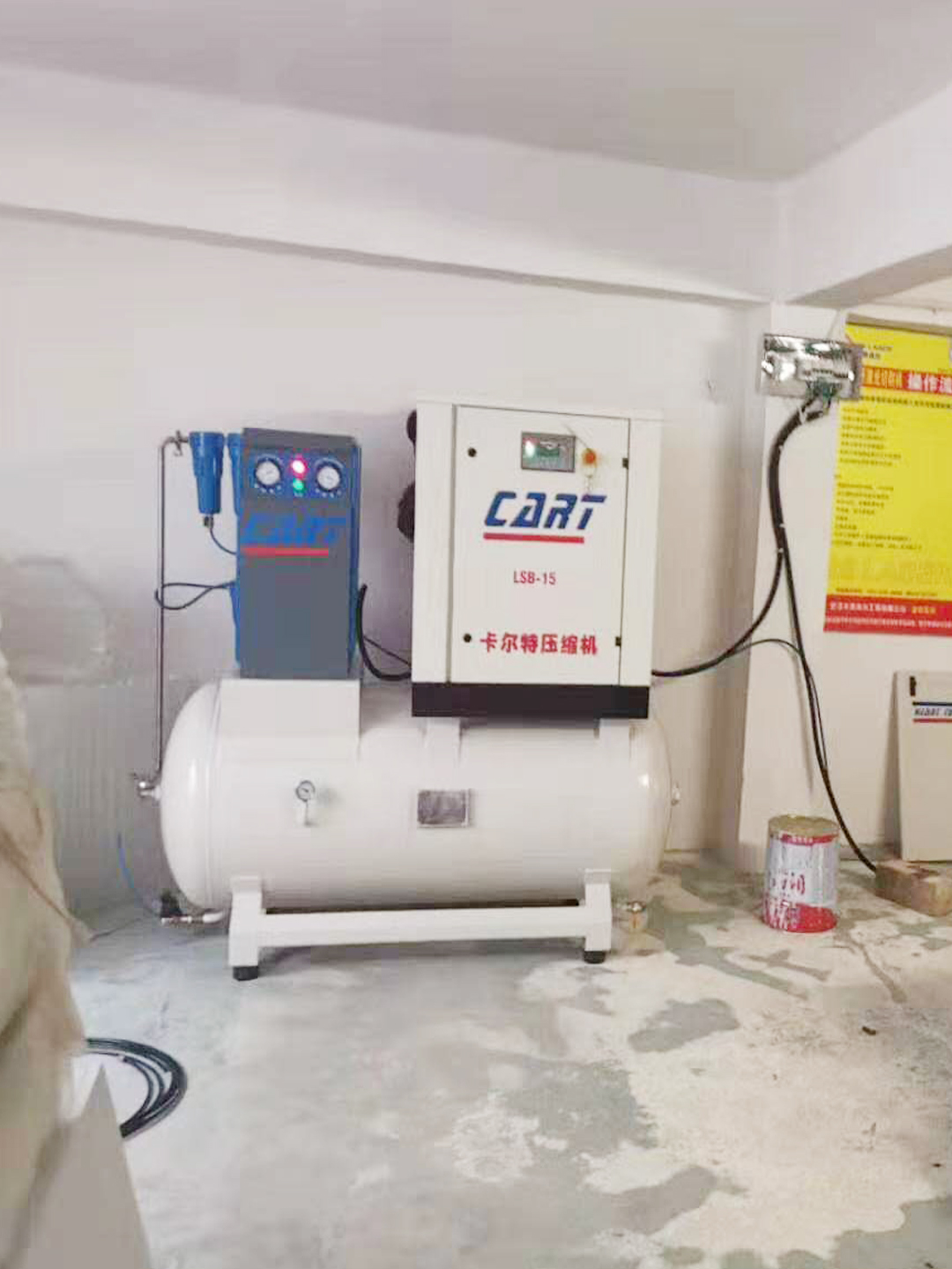 一體式空壓機是將空氣壓縮機,冷凍干燥機、精密過濾器、儲氣罐等部件集成于一體的系統(tǒng)裝置,因此也可以叫組合式空壓機,用戶安裝方便,使用簡單,移動靈活。