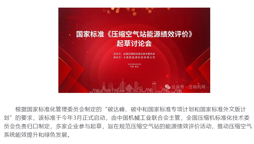 空壓機(jī)節(jié)能減排越來越重要,6月20日,全國壓縮機(jī)標(biāo)準(zhǔn)化技術(shù)委員會在青島市組織召開(壓縮機(jī)氣站能源績效評價)國家標(biāo)準(zhǔn)第二次討論會。本次會議由卡奧斯能源科技有限公司承辦,30余家行業(yè)領(lǐng)軍企業(yè)、協(xié)會和專家代表齊聚一堂,為壓縮機(jī)領(lǐng)域國家標(biāo)準(zhǔn)的制定貢獻(xiàn)經(jīng)驗(yàn)與智慧。